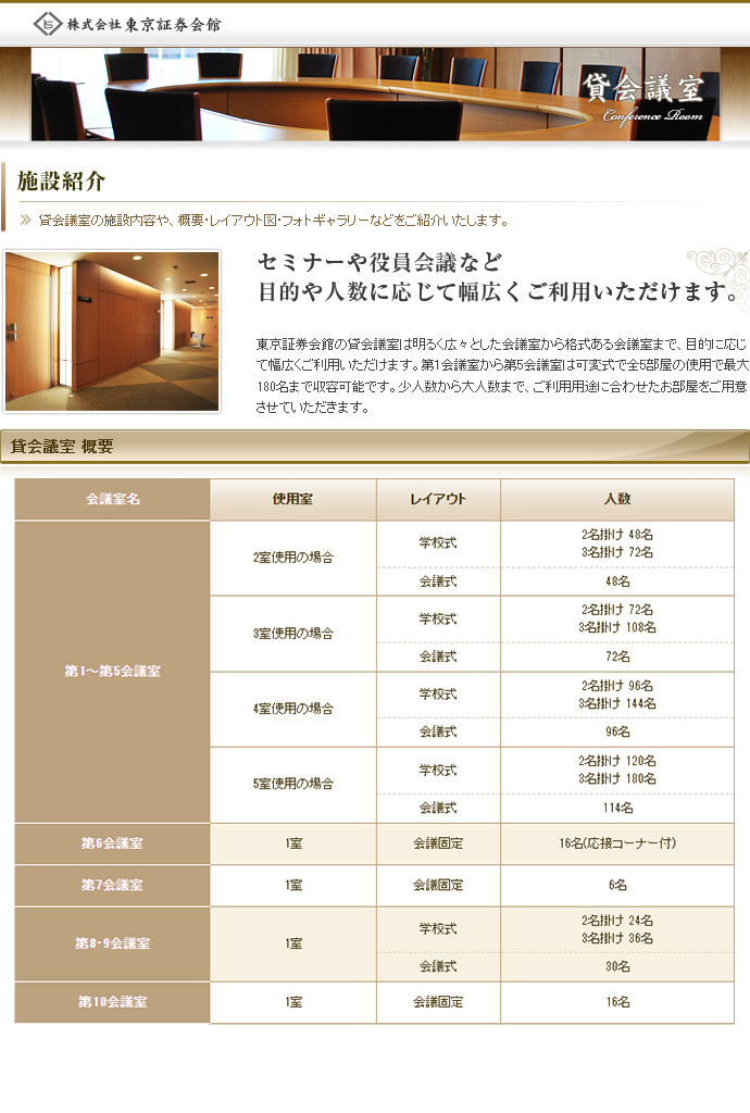 貸会議室の施設内容や、概要・レイアウト図・フォトギャラリーなどをご紹介いたします。